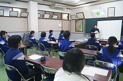そのあと、ピア・サポートに関する職員研修を行い、県教育委員会より来ていただいた講師の先生から、ピア・サポート活動に取り組む意義や、具体的な進め方について演習もも取り入れながら説明をしてもらいました。今年から始まった取組なので、どう進めていけばよいのか不安なところもたくさんあったのですが、研修を行ったことによりピア・サポートへの理解を深めることができました。これから実践を深めていきながら、生徒の自己肯定感を高めていけるように取り組んでいきます。