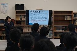 1月15日(火)に薬物乱用防止教室がありました。日向警察署より講師の方を招いて行われたこの教室では、違法薬物の種類や、人体への影響、薬物の依存性などDVDによる映像も交えながら話がありました。薬物乱用の恐ろしさを十分に理解し、薬物には絶対に手を出してはいけないという思いを強くもつことのできた時間でした。