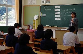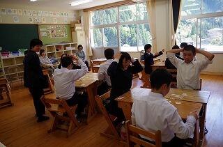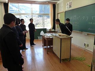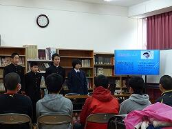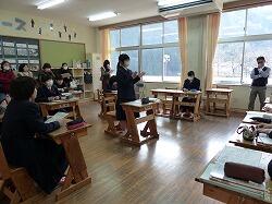 体験授業の後は、中学校生活について、1年生によるプレゼンテーション形式による発表を行いました。工夫を凝らした発表に、児童のみなさんは熱心に耳を傾けており、中学校生活への期待が一層ふくらんだことと思います。6年生のみなさんが、諸塚中学校へ入学してくるのがとても楽しみです。