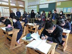 2月16日(土)は、本年度最後の参観日でした。各学年の授業は、1年生が数学、2年生が社会、3年生が保健体育ということで、どの学年ともに主体的に授業に取り組んでいたようです。また、学級懇談会、家庭教育学級の閉級式にもたくさんの保護者の皆様が参加していただきました。