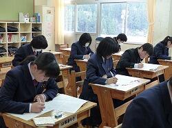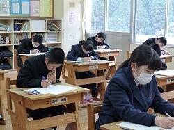 本日から今年度最後の定期テストとなる学年末テストが始まりました。3学期は定期テストが1回しかないので、このテストに向けて計画的に勉強してきたことと思います。1校時のテストの様子を見て回りましたが、どの学年とも実に真剣な態度でテストに臨んでいました。今年度も、残り1か月余りとなってきました。有終の美を飾ってほしいものです。