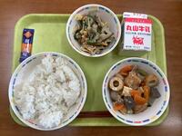 根菜つくねの「つくね」は、こねて丸めるという意味をもつ「つくねる」が元々の語源だと言われています。今日はごぼう・人参・れんこんなどの根菜が入ったつくねでした。