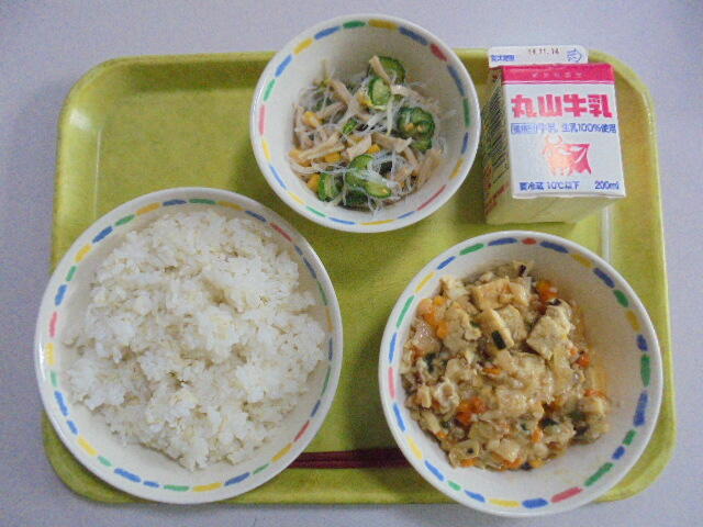 麻婆厚揚げは、不足しがちな豆製品を厚揚げでたっぷりとれる献立でした。