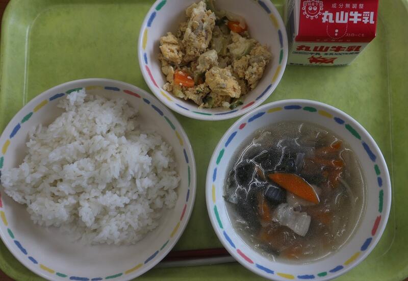 筑前煮は、今の福岡県のことで、代表的な郷土料理です。かみごたえのある食材が多かったので、よくかむことを生徒へ伝えました。よくかむと満腹感が出て食べ過ぎを防いだり、味覚の発達につながったりなど、良いことがたくさんあります。