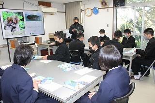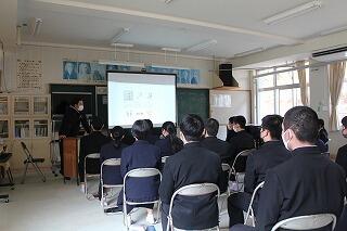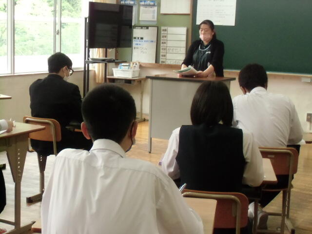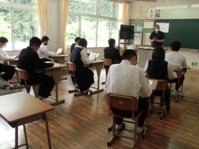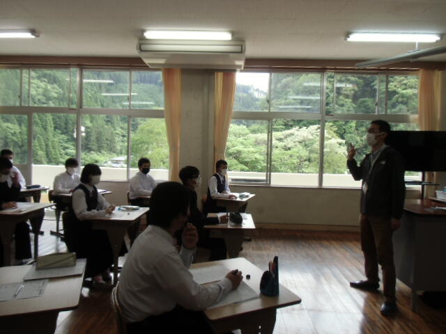 6月2日(木)、1年生は、総合的な学習の時間に、GIAHS(世界農業遺産)について学びました。2015年に指定されて以来、地域学習の一環として取り組んでいるもので、当日は、諸塚村観光協会より田邊氏にお越し頂き、講話をしてもらいました。田邊氏は、指定されるための5つの要素をもとに、この地域の特徴について話をしてくださいました。今後も持続可能な農業の保全のために、自分たちができることを考えるきっかけになりました。