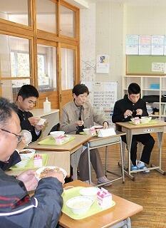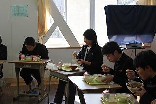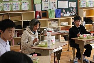 11月25日(金)に、給食試食会を実施しました(メニューは『今日の献立』をご覧ください。)。当日は、学校参観日でもあり、9名が給食の準備から参観され、実際に試食していただきました。後の感想も好評で、普段、生徒が食べている給食を知ってもらう良い機会となったのではないでしょうか。