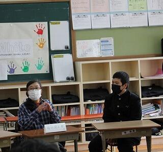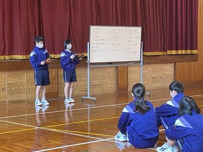 1月17日(火)に、給食感謝集会を実施しました。今回は調理担当の方々にもご参加して頂きました。まず、全員で作成した感謝のメッセージカードを贈った後、クイズ形式で、食のマナーについて学習しました。特に、和食のマナーについては、知らなかった人も多くいたようです。最後に、給食担当の先生から、命を頂く事への感謝を忘れずに、という話で終わりました。