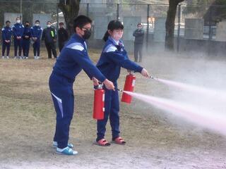 今回は、火災発生を想定したもので、各学級での説明の後、調理室からの出火を想定して、グラウンドへ避難しました。その後、諸塚村役場の方から、火災発生時の対応についての説明を受け、消化器での消火訓練も実施しました。グラウンドは大変寒かったですが、災害発生は時期を選びません。自分の身は自分で守る、という意識をもてる良いきっかけとなりました。