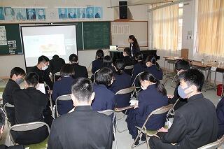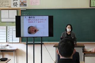 まず、延岡市育生会井上病院 佐伯理花先生に講話をしていただきました。「命の大切さ」「性の現状」について教えていただきました。「赤ちゃんが、自分で決めて、自分で覚悟して、生きるために生まれてくる。」というお話が印象的でした。