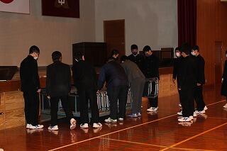 本日6校時に1・2年生で第1回目の卒業式の練習を行いました。気持ちの入った練習態度はさすがでした。会場設営も慣れたものですね。とても手際が良かったです。校長からの宿題頑張って考えてね。