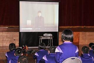 また、午後には、交通安全教室を実施しました。全生徒対象でしたが、自転車での移動の機会が増えることを想定して、起こりうる様々な事故や危険防止について、ビデオ鑑賞を交えた説明がありました。