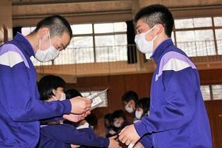 閉会行事では、3年生一人一人の言葉の後、在校生と3年生同士での贈り物の交換もあり、大変感動的な内容でした。諸塚中学校の全員にとって大変楽しい、思い出深い一日となりました。3年生はいよいよ今週で卒業を迎えます。