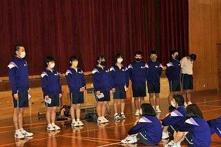本日の午後に「送別行事」が行われました。全校生徒を4チームに分けて、バレーボールをしました。異学年男女ミックス構成のチームならではのチームワークや迷プレイで大いに盛り上がりました。3年生対職員も楽しかったです。バレーボールの後は、生徒会役員が中心となって3年生に贈るために制作した動画を上映しました。1・2年生全員のコメントが3年生の胸をジーンとさせました。最後は、1・2年生から3年生にプレゼントを渡し、3年生から1人1人あいさつをもらいました。全校生徒の仲の良さが伝わってくる楽しいひとときでした。
