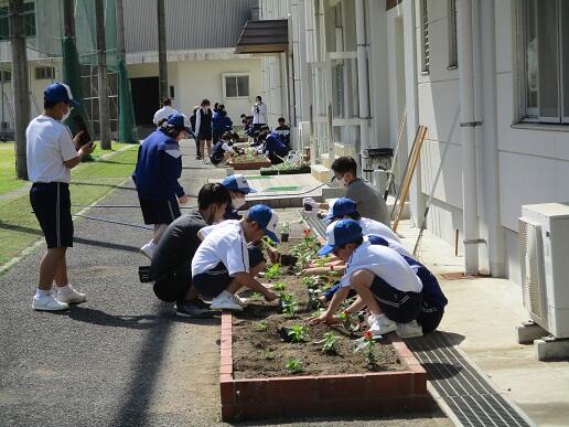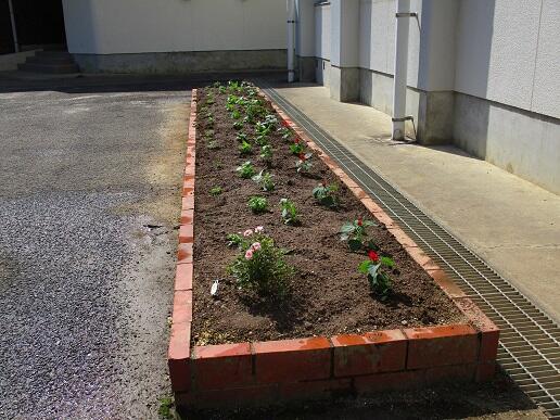 本校では、主に水曜日に、フラワースマイリー運動(フラスマ)を行っています。中心となるのは、花壇整備です。5月18日、本年度初の花植えを行いました。約20分間で、各学年の花壇に苗を植え終えました。来月には、色とりどりの花で学校を飾ってくれることでしょう。