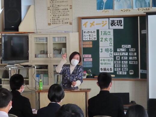 前半は、日向市で、momo助産院を営む吉田さんを講師に、「私たちの生と性」と題して講話をしていただきました。男女それぞれに違う心と体のバランスについて、大変分かりやすく教えていただきました。後半は、諸塚村役場の方が進行役で、それぞれが目指す大人像というテーマで、個々がイメージする、目指す大人について考え、発表するワークショップを行いました。