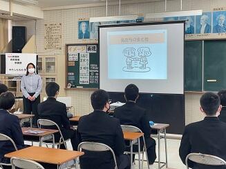 3月9日(木)、卒業を間近に控えた3年生を対象に、諸塚村役場の協力を得て、思春期福祉体験学習会を実施しました。