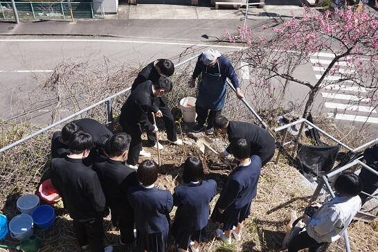 5月17日(火)、奉仕作業を実施しました。夕方から保護者の皆様にも参加していただき、生徒、先生方ともに校内の除草を中心に行いました。約1時間でしたが、校内と周辺がスッキリとしました。これで生徒も安心して、授業や部活動に取り組めることでしょう。参加していただいた保護者の皆様、ありがとうございました。