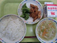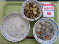 今年度最後の給食です。1年間の給食を振り返ってみましょう。食事のマナーは守れていましたか?苦手な食べ物は、何か一つでも減らすことができましたか?自分の量を、しっかりと食べきることができましたか?・・・学年が一つ上がると、その分給食も少し多くなります。1年間で身につけた食に関する力を、次の学年でも発揮していきましょう。