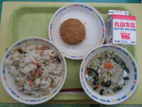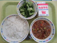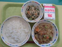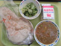 今日から、非常食を一部取り入れ、給食が再開しました。