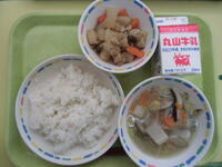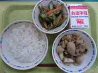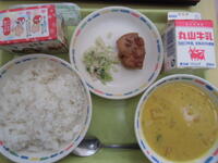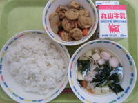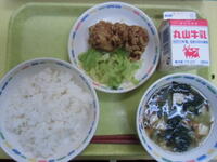 からあげは、江戸時代の初め頃、中国から伝わってきました。当時のものは、豆腐を小さく切って揚げ、酒としょうゆで煮たものでした。鶏肉のから揚げが登場したのは、昭和7年頃、東京の銀座の食堂だといわれています。給食でも人気の献立の一つで、諸塚中学校1年生のリクエストでもありました。