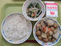 2月22日は、「おでんの日」です。熱々のおでんを「ふー、ふーふー」と息を吹きかけて食べる様子の語呂合わせからきています。具だくさんな給食のおでんを、味わっていただきました♪