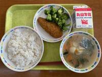 今日は諸塚学校給食の日です。県内の養殖漁業で育てられた「たい」を使ったから揚げと、諸塚産のとうきび等を使った献立です。