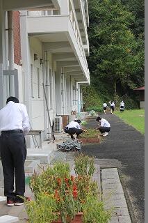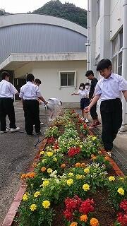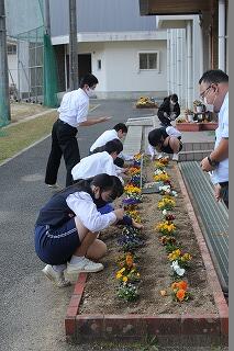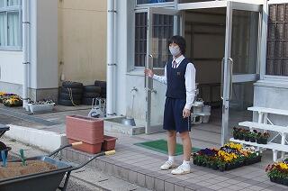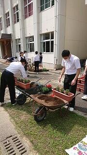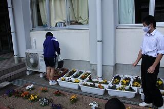ふれあいタイムでは、中央委員会とフラワースマイリー活動を行いました。中央委員会では、各委員会の取組について、活発に意見交換していました。他人事ではなく、自分事として考えていますね。いいです。フラワースマイリー活動では、プランターや鉢をきれいに洗い、花植えの下準備をしました。みんな、本当にいい動きをしていました。