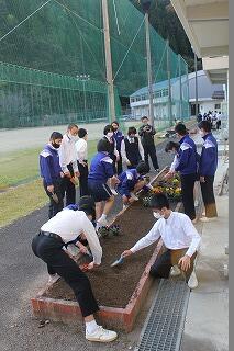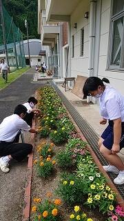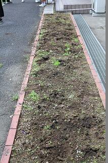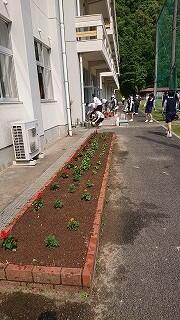 フラワースマイリー運動では、各学年の花壇の整備を行いました。雑草を抜きました。特に2学年の花壇に雑草が多かったので、みんなで加勢しました。短時間の作業でしたが、みんなの協力で花壇がきれいに整備されました。