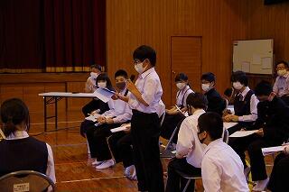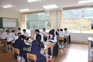 後期になって初めての学級・全校専門委員会が行われました。前半は各学級で、後半は各専門委員会に分かれて協議を行いました。内容は、10・11月活動の反省、12・1月目標の具体策検討でした。役員の人たちは緊張したかもしれませんが、凛とした雰囲気の中真剣に話し合いができていて素晴らしかったです。来週の中央委員会もがんばってください。