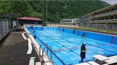 九州南部は梅雨入りしたそうですが、今日は諸塚はとてもいい天気でした。そんな中、3年生と2年生の皆さんが、プール清掃をしてくれました。1年間溜まっていた木の葉などを3年生がきれいに除去してくれて、2年生が仕上げ磨きをしてくれました。見違えるようにきれいになりました。ありがとうございました。気分はもう真夏。水泳が楽しみですね。