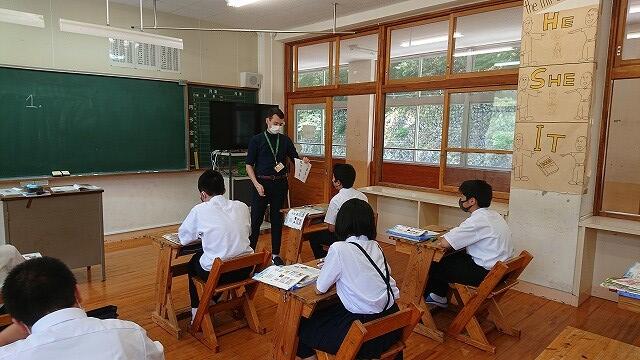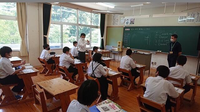 1年生の4時間目の英語は、竹之内先生とALTのモーガン先生のティーム・ティーチングでした。新型コロナウィルスの影響で、モーガン先生の授業は久しぶりでした。モーガン先生は、「学校で授業ができてとても幸せです。」と言われていました。
