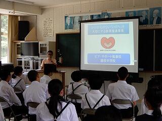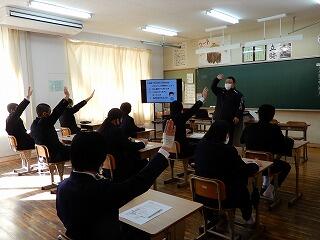 1年生は「生活習慣病と病気の関係性」、2年生は「がんの予防」、3年生は「がんとともに生きる」という学習内容でした。大切なことは、授業で学んだことを実践することです。若いうちから健康には気を付けてほしいと思います。