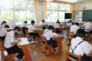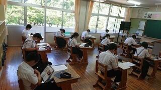 いよいよ1学期の終業の日となりました。本日の1時間目は教科の授業でした。1年生は国語、2年生は社会、3年生は数学でした。最後までしっかり集中して取り組みました。