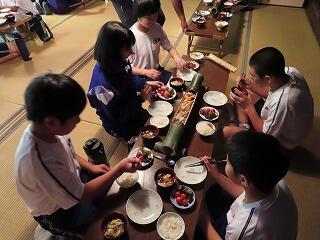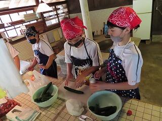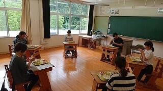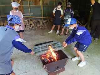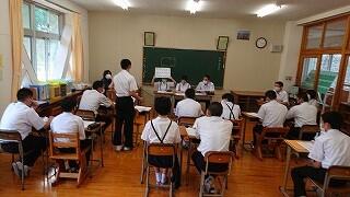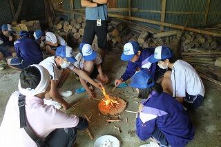 7月1日に1・2年生は、古民家体験学習を行いました。場所は、「やましぎの杜」。諸塚中から七ツ山方面へ車で30分程度のところにあります。諸塚観光協会の方々にご指導いただきました。火おこし、釜飯炊き、かっぽ鶏、汁物、おかか和えなどを調理しました。火おこしも最初は苦労しましたが、だんだんと要領がよくなってきました。片付けもきちんと行い、その後体験学習で学んだことを振り返りました。2年生の昊さんは、「昔の生活は大変だったこと、今の生活はとても便利だということが分かりました。楽しかったです。」と感想を語ってくれました。便利な生活に慣れている生徒の皆さんにとっては、昔の人々の生活の知恵や工夫を学び、不便だけど手間暇かけて調理したり生活したりすることの魅力に触れることができた貴重な一日だったのではないでしょうか。諸塚村の魅力に触れた一日でした。