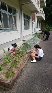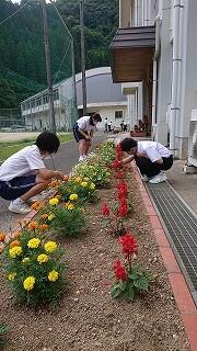 今日のふれあいタイムは、中央委員会とフラワースマイリー活動でした。中央委員会では、7月と9月の各委員会の活動内容について検討しました。中央委員会のリーダーシップに期待しています。フラワースマイリー活動では、花壇の整備を行いました。雑草を抜いたり、枯れた葉を取ったりと、丁寧にお世話しました。