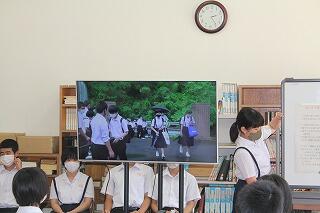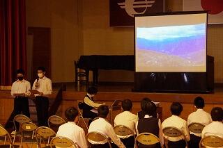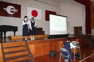 5時間目に生徒集会がありました。中央委員会の報告と生徒総会の決定事項の説明がありました。生徒会長の桜さんが挨拶の中で、「生徒総会から1か月過ぎました。皆さんは、あいさつ日本一の意識が高まったでしょうか。」と語りかけました。
