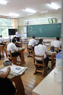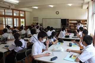 本日から3日間サマースクールが行われています。全学年1日5コマの授業があります。しっかり学んでほしいと思います。給食もつくっていただき大変ありがたいです。休憩時間では、暑い中校庭でバレーボールで遊ぶ男子の姿もありました。元気がいいです。画像は、2年生の理科の授業の様子です。