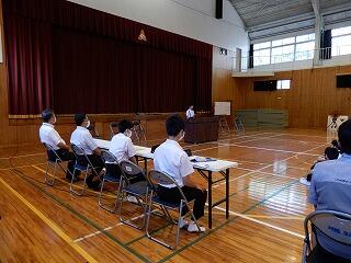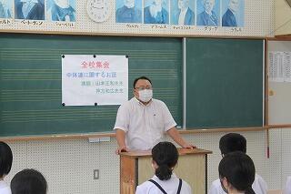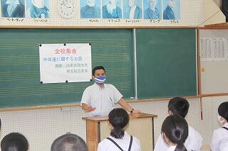 本日のふれあいタイムは、全校集会で「中体連に関するお話」というお題で、押方先生と山本先生にお話をしてもらいました。