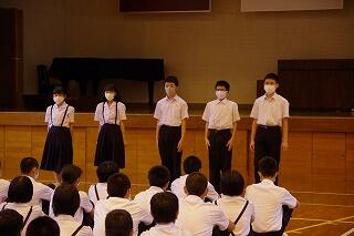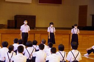 最後には、生徒会長の桜さんから、2学期もあいさつをがんばりましょう、と激励のことばをもらいました。