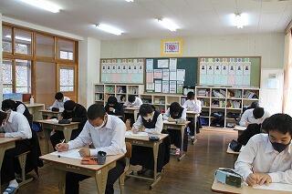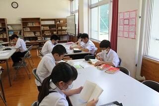 いつもと同じように静かな読書の時間を1・2年生は過ごしました。3年生は今日と明日、実力テストがあるので、真剣に復習していました。皆さん、がんばれ!