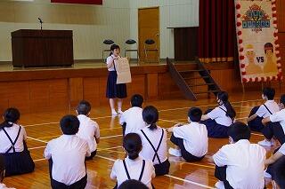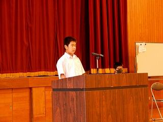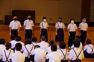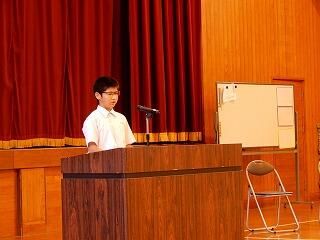 終業式では、1年生の萌愛さん、2年生の花和さん、3年生の響くんが1学期の反省を発表してくれました。3人とも1学期精一杯努力したことが伝わってきました。同時にもっと頑張りたいことに気が付いたことも語ってくれました。夏休み、2学期につながる、素晴らしい反省でした。