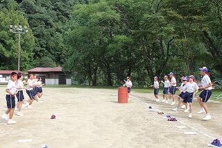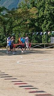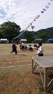 午後1時前、天気予報どおり雨が降ってきました。掲揚台の国旗、村旗、校旗の3枚が濡れてしまうなあ、と思った直後。3人の3年生がダッシュで掲揚台に駆け寄りました。ありがとうございます。