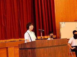 2学期は最も長い学期で、行事も多いので、忙しくなりますが、全員で協力していきましょう。コロナ禍で苦しいこともあるかもしれないけど、苦しいときこそ笑顔で、全員で乗り越えていきましょう。