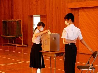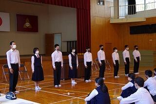 新役員の皆さんには、任命書が授与されました。新生徒会長の柊平さんが心強い意気込みを述べてくれました。自覚と責任をもち、失敗を恐れず、思い切った取組を期待しています。