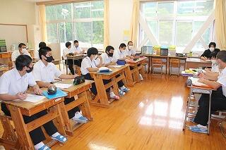 学校再開に向けて、登校日を設けて準備を行ってきましたが、5月25日(月)から通常どおりの授業を再開します。部活動も再開します。隣接町村との合同チームでの活動も再開します。ただし、対外試合や合同チーム以外の対外練習は6月20日(土)までは引き続き自粛します。