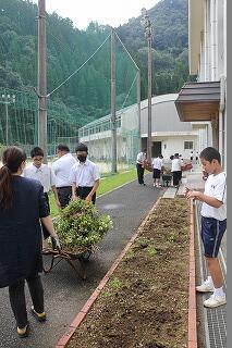 本日午後5時から6時まで、中学校校庭の除草を中心にPTAの皆様と中学生で清掃作業を行いました。おかげでとてもきれいになりました。2学期も気持ちよくスタートできます。お忙しい中、またお疲れのところご協力いただきありがとうございました。