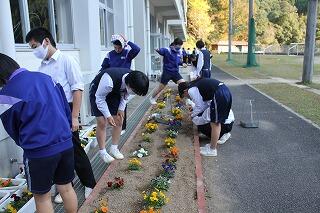 12月23日(水)のふれあいタイムは、フラスマ運動でした。花壇やプランターの草抜きや水やりを中心に行いました。また、冬休みの水やり当番も確認しました。花もこの寒さを乗り越えて、春に咲き誇ってほしいです。
