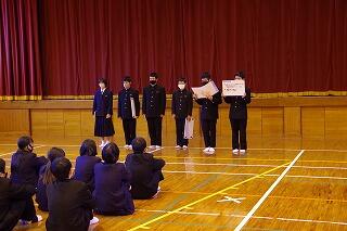 中央委員会では、2月・3月の具体策について、生活委員会、学習委員会、保体委員会が提案し、質疑応答がありました。それぞれの委員会で時節に合った具体策を提案していますので、2月3日の生徒集会が楽しみです。