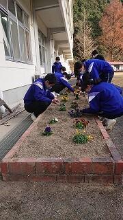本日は、フラスマ運動で花植えをしました。学級花壇とプランターを整えました。「土の中が温かい!」と1年生男子がつぶやいていました。これから寒い日が続きますが、卒業式まできれいに咲き続けるよう、お世話をしていきましょう。