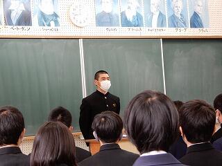また、生徒会は役員だけの活動ではないことは周知のとおりです。34人全員で、よき伝統を引き継ぎ、新たな未来を切り拓いてほしいと思います。
